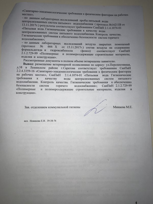 Недостатки: Не помешал бы ветеринарный "хостес". Который бы встречал пациентов, уточнял с какой проблемой у животного пришел хозяин, вносил в карточку животного, сообщал, что врач занят, на операции и необходимо подождать или , если начинающий ветврач может справиться с ситуацией, то приглашал бы к нему (прививки, инъекции, обработки ран, швов...).